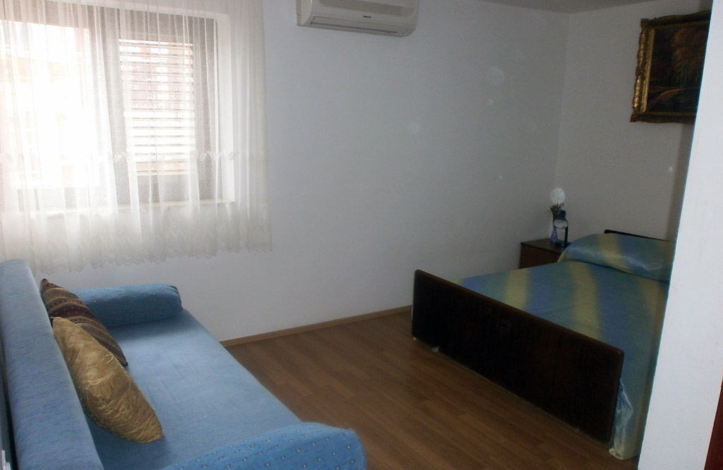 -pov 42 m2, soba s bračnim krevetom + soba s 2 odvojena ležaja za po 1 osobu, kuhinja, dnevna s ležajem za 2 osobe