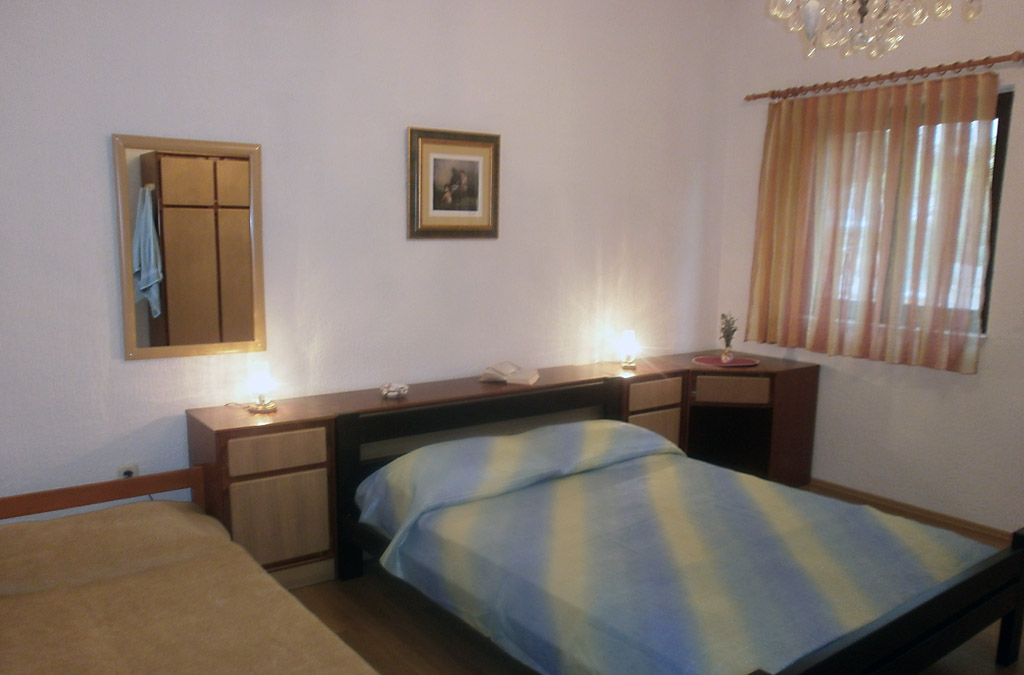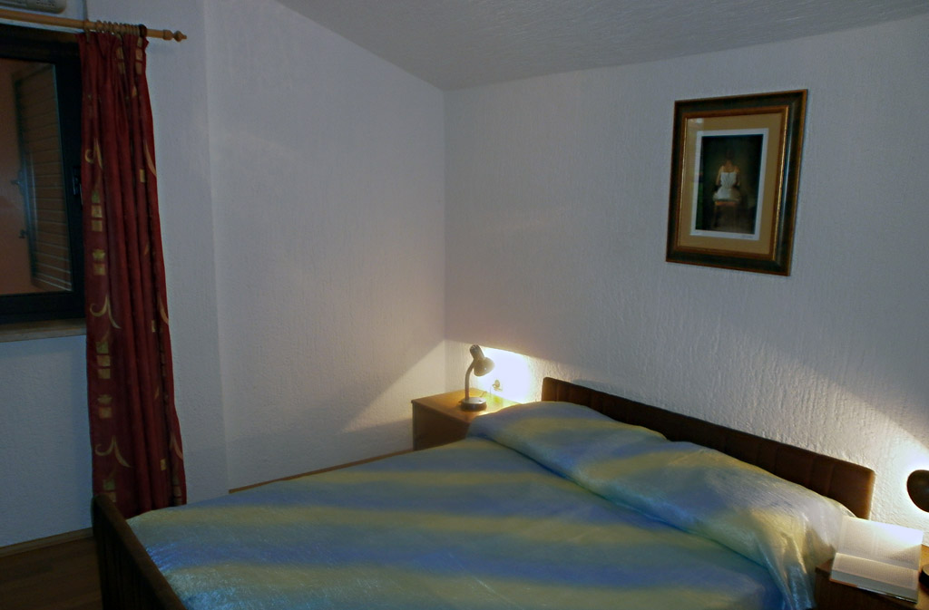 -pov. 70 m2, 2 spavaće sobe, jedna spavaća s bračnim te krevetom za 1 osobu, druga spavaća s bračnim krevetom, velika kuhinja, dnevna soba s ležajem za 2 osobe, kupaonica, klima, TV, SAT, terasa s pogledom na more |